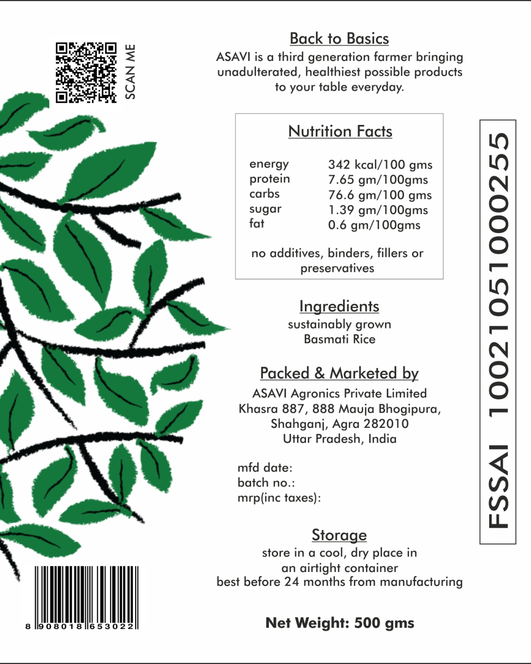 ASAVI® Basmati Rice is one of the longest grain in the world. It is carefully grown in the fertile soil of Haryana, processed without adding artificial chemicals, color or aroma.